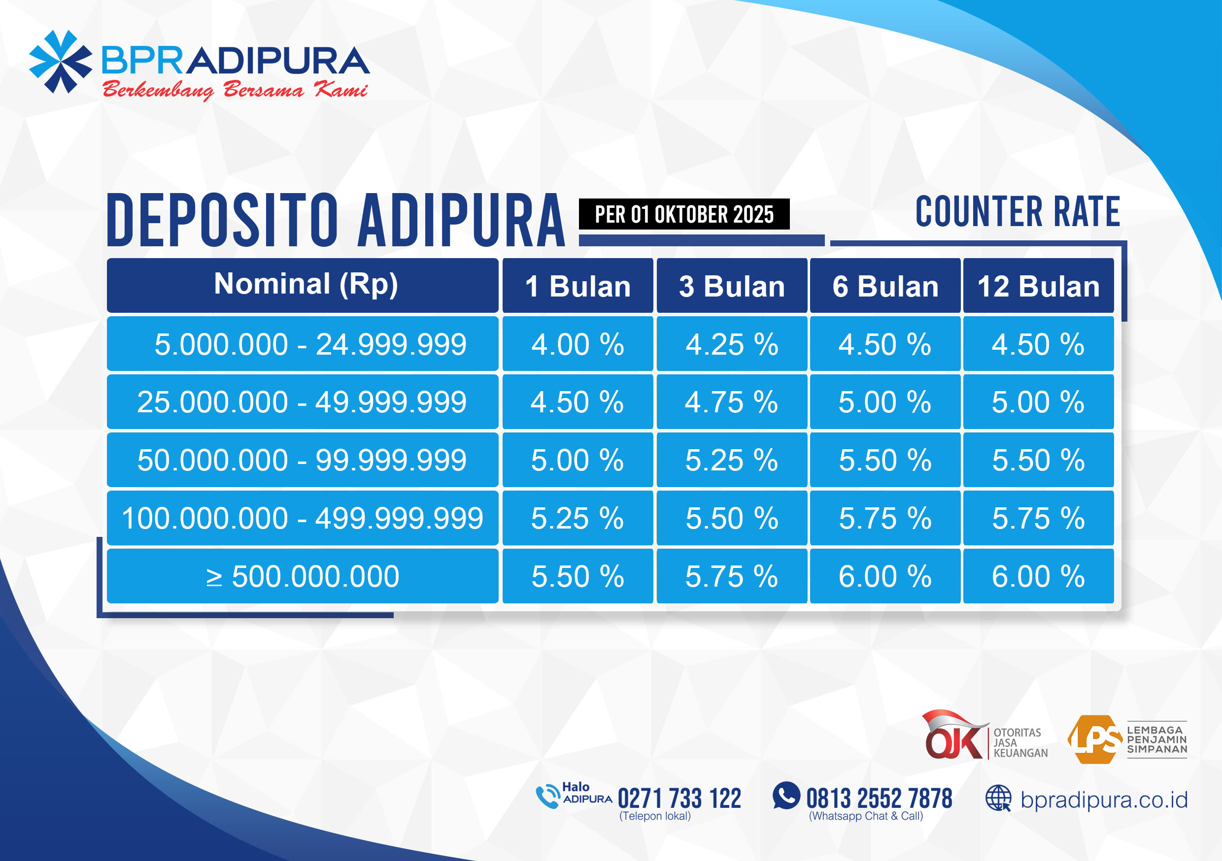 · Penempatan deposito mulai dari Rp 5 juta saja